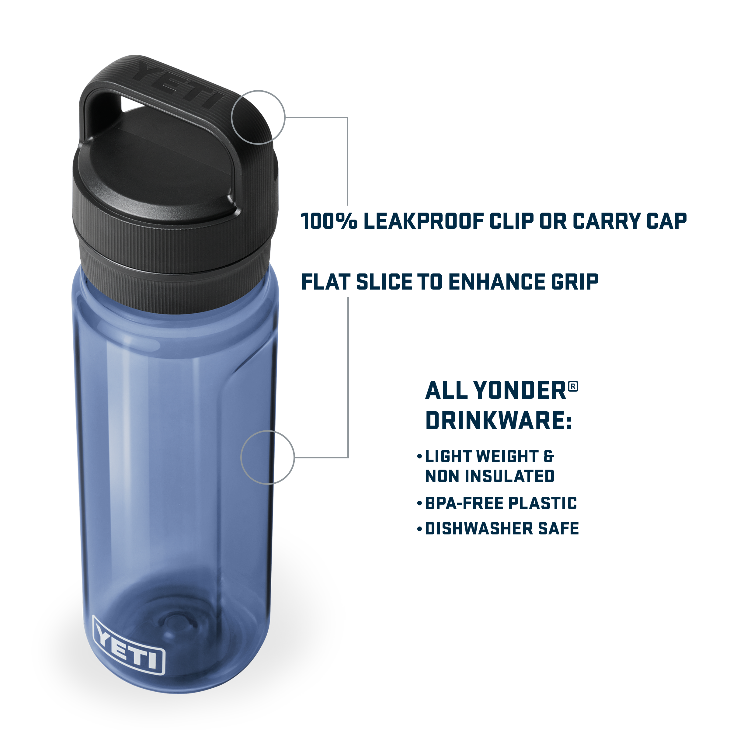- Compatible with Yonderâ„¢ Tether Cap and small Bottle Sling (both sold separately)